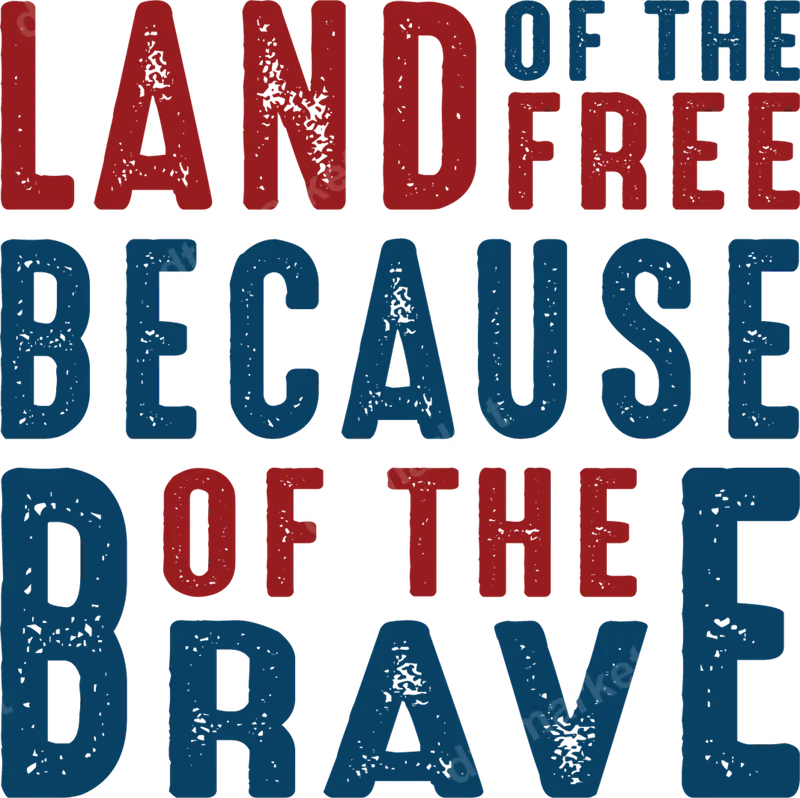 See allThis impactful DTF transfer proudly displays the timeless phrase "LAND OF THE FREE BECAUSE OF THE BRAVE" in bold, distressed red and blue typography. The grunge texture adds a rugged, vintage feel to this powerful patriotic statement. As a premium DTF transfer, it's a ready to press design that arrives vibrant and crisp, perfect for immediately personalizing your apparel. This direct to film transfer is an excellent choice for anyone wanting to express gratitude for freedom. This powerful heat transfer is ideal for patriots, veterans, active military personnel, and their proud families. It’s a perfect design for celebrating national holidays like the Fourth of July, Memorial Day, and Veterans Day, or as a thoughtful gift for service members. Whether attending a parade or simply wanting to showcase your American spirit, this iron on transfer makes a profound statement on any garment. Our high-quality DTF transfers are designed for easy application on a wide range of fabrics, including cotton, polyester, and cotton-poly blends. For best results, use a heat press at 300-325°F for 15 seconds with medium, even pressure. This durable heat press design can also be applied with a household iron (follow instructions). Forget tedious weeding; these t-shirt transfers simplify the customization process. Experience professional-grade results with our premium DTF transfers. Each apparel transfer boasts incredibly vibrant, true-to-color inks that resist cracking and fading, ensuring your design looks great wash after wash. The finished product offers a remarkably soft hand feel, integrating seamlessly with the fabric for maximum comfort. Trust our professional DTF film with strong adhesive for a long-lasting, high-quality finish on all your custom transfer projects.