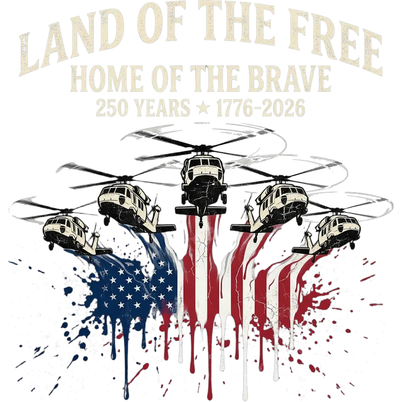 Land of the Free Home of the Brave 250 Years American Flag & Helicopters DTF Transfer
