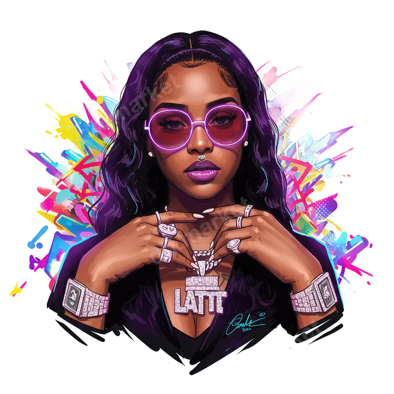 See allUnleash urban sophistication with this dynamic 'LATTE' Drip Woman DTF transfer. This striking design showcases a confident woman adorned with dazzling diamond jewelry, including an eye-catching 'LATTE' pendant, framed by bold neon sunglasses and a vibrant graffiti-style backdrop. It's a perfect ready to press statement piece for anyone looking to add serious flair to their wardrobe. This glamorous heat transfer is ideal for streetwear enthusiasts, hip-hop fans, and anyone who loves bold, fashion-forward art. Perfect for personalizing apparel for concerts, festivals, or simply making a stylish everyday statement. It also makes a unique gift for friends who appreciate urban culture and standout designs. Applying this high-quality iron on transfer is simple and efficient. It works seamlessly on a wide range of materials, including cotton, polyester, and various blends. For best results, use a heat press at 300-325°F for 15 seconds with medium pressure. No tedious weeding or layering required, making your customization process quick and hassle-free. Experience vibrant colors and exceptional durability with this professional-grade DTF transfer. Crafted with premium film and strong adhesive, your finished design will be crack-resistant, soft to the touch, and maintain its brilliant appearance wash after wash. Transform your t-shirt, hoodie, or tote bag into a work of art with this stunning heat press design.