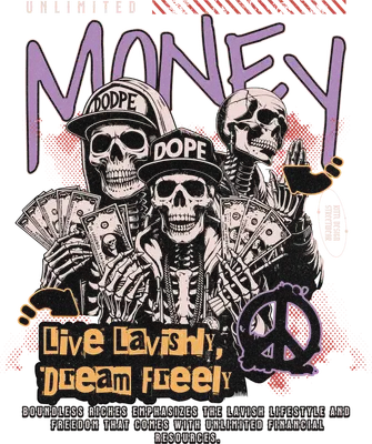 Lavish Dream Money Skeletons Streetwear DTF Transfer
