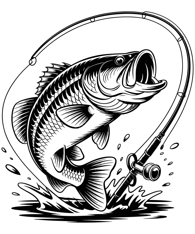 Leaping Bass Fish & Fishing Rod DTF Transfer | Ready to Press Angler Design