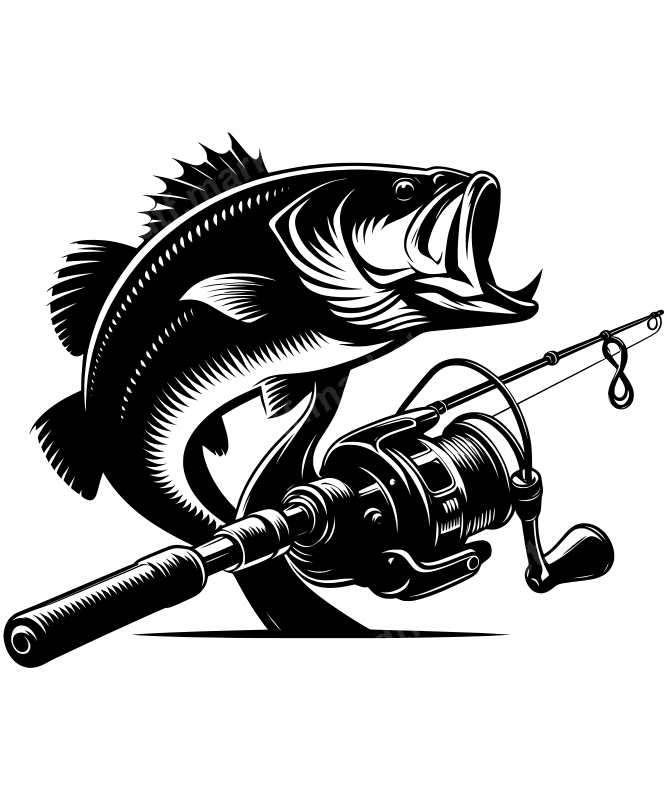 Leaping Bass Fish & Fishing Rod DTF Transfer | Ready to Press