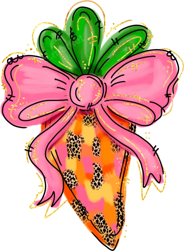 Leopard Print Carrot DTF Transfer with Pink Bow & Gold Glitter