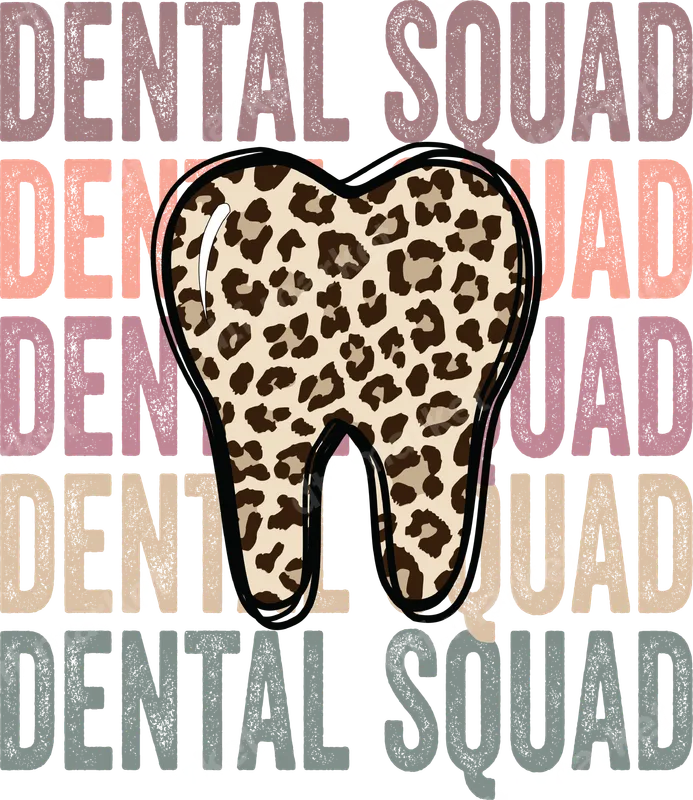 See allThis eye-catching "DENTAL SQUAD" DTF transfer features a bold leopard print tooth design, framed by distressed lettering in chic, muted pastel tones. It’s the perfect way to add some wild style to your professional wardrobe or show off your team spirit. This high-quality direct to film transfer is vibrant, detailed, and completely ready to press onto your favorite garments. Ideal for dentists, dental hygienists, dental assistants, and all dental office staff, this design is a fantastic way to unify your team or celebrate your profession. It makes an excellent staff appreciation gift, a fun uniform accent, or a unique present for a dental student. Create custom apparel with this stylish iron on transfer that speaks volumes about your dedication and personality. Applying this heat press transfer is incredibly easy, requiring no weeding or intricate steps. Simply use a heat press at 300-325°F for 15 seconds, peel cold, and you're done! Our heat press designs work beautifully on a wide variety of fabrics, including cotton, polyester, and their blends. Transform t-shirts, hoodies, scrubs, tote bags, and more into personalized statement pieces. Crafted with premium DTF film, this heat press ready design ensures exceptional durability and a soft, lightweight feel. The vibrant colors are crack-resistant and hold up beautifully through countless washes, maintaining their integrity without fading. Enjoy professional-grade results that showcase your Dental Squad pride with a transfer built to last.