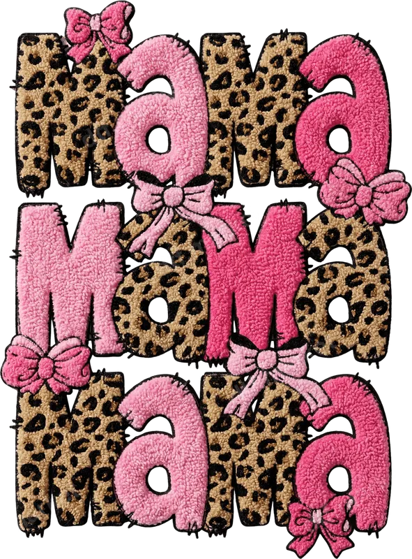 See allCelebrate motherhood with this vibrant and stylish Mama DTF transfer! Featuring a captivating design, the word 'MAMA' is beautifully rendered in an alternating pattern of plush pink chenille texture and bold leopard print, stacked three times for a striking visual. Each 'A' letter is charmingly accented with a delicate pink bow, adding a sweet, feminine touch to its fierce aesthetic. This eye-catching heat press design is ready to transform your apparel and accessories into personalized statements of mom pride. This playful Mama iron on transfer is perfect for the trendy mom, new mother, or proud grandma who loves to express her unique style. It makes an exceptional gift for Mother's Day, birthdays, baby showers, or 'just because' to celebrate the amazing women in your life. Design custom t-shirts, sweatshirts, tote bags, or hats for family outings, school events, or simply to add a touch of personality to your everyday wardrobe. It’s also a fantastic choice for matching mom-and-me outfits or gifts for a group of mom friends. Applying this high-quality heat press transfer is a breeze! Our apparel transfer works seamlessly on a wide range of fabric types, including cotton, polyester, and various blends, ensuring versatility for all your crafting projects. For best results, use a heat press at 300-325°F for 15 seconds with medium pressure. It's also suitable for application with a household iron, although a heat press is recommended for professional longevity. Forget tedious weeding; these transfers are ready to press straight onto your chosen garment, saving you time and effort. Experience superior quality with our durable ready to press transfer. Crafted using professional-grade DTF film and inks, this custom transfer delivers vibrant colors that pop and a soft-to-touch feel that won't crack, peel, or fade with proper care. The strong adhesive ensures a lasting bond with your fabric, allowing you to create personalized items that stand up to countless washes and wears. Give your creations a professional, high-end finish effortlessly with dtf.market.