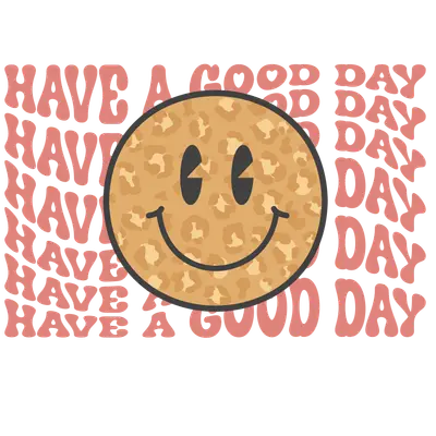 Leopard Print Smiley Face DTF Transfer - Have a Good Day Groovy Text