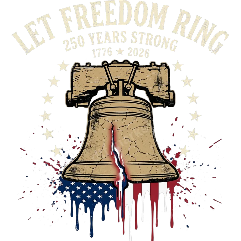 See allThis vibrant DTF transfer features a striking distressed rendition of the iconic Liberty Bell, emblazoned with "LET FREEDOM RING." Below, "250 YEARS STRONG" and "1776 ★ 2026" commemorate America's Semiquincentennial anniversary. The design is completed with a unique dripping American flag motif, adding an artistic touch to this patriotic emblem. This ready to press transfer perfectly captures the spirit of independence and national pride. This patriotic iron on transfer is ideal for showcasing American pride, especially for the upcoming 250th anniversary in 2026. It's a fantastic choice for Fourth of July, Memorial Day, Veterans Day, or any event celebrating national spirit. Perfect for history buffs, veterans, active service members, and proud Americans, this design also makes a thoughtful gift. Create custom apparel for rallies, parades, or everyday wear. Applying this heat press design is simple and hassle-free, suitable for both beginners and experienced crafters. Our high-quality heat press transfers adhere beautifully to a wide range of fabrics, including cotton, polyester, and cotton/poly blends. For best results, use a heat press at 300-325°F for 15 seconds with medium pressure. It can also be applied with a household iron. No weeding or complex layering is required, making customization quick and easy. Experience the superior quality of our professional-grade DTF transfers. Each direct to film transfer is produced with vibrant, long-lasting colors that resist cracking, peeling, and fading, ensuring your customized items look great wash after wash. The finished design has a soft, flexible feel that seamlessly integrates with the fabric, providing comfort and durability. Our premium DTF film and strong adhesive ensure a reliable bond, delivering a professional finish.