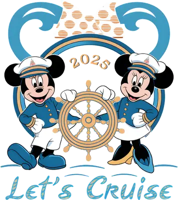 Let's Cruise 2025 DTF Transfer | Nautical Cartoon Duo Ship Wheel