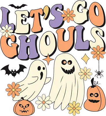Let's Go Ghouls Retro Ghost DTF Transfer | Halloween Spooky Cute