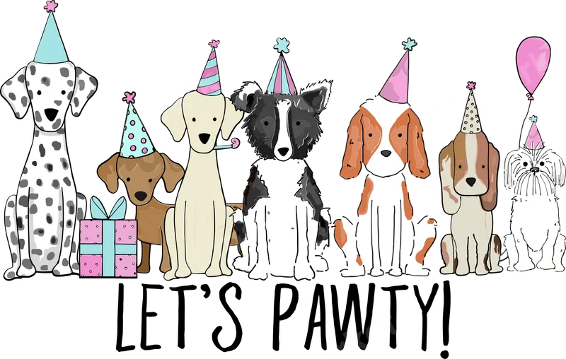 Let's Pawty Dogs DTF Transfer - Cute Puppy Party Heat Press Design