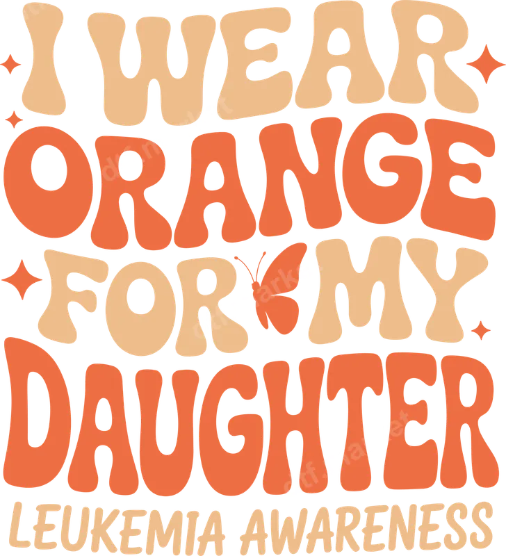 See allThis heartwarming DTF transfer design proudly declares "I WEAR ORANGE FOR MY DAUGHTER LEUKEMIA AWARENESS" in a charming retro, groovy font. Adorned with subtle stars and a delicate butterfly accent, the vibrant orange and beige palette conveys both strong support and a gentle spirit. This powerful message is printed as a high-quality, ready to press transfer, perfect for creating personalized garments that raise awareness. This design is ideal for mothers, fathers, or any family member wanting to express solidarity and love for a daughter battling Leukemia. Perfect for awareness walks, fundraising events, family gatherings, or everyday wear to spread an important message. It also makes a thoughtful gift for parents, grandparents, or friends committed to supporting their loved ones through their journey. Applying this heat transfer is simple, making it accessible for personalizing a wide range of items. Our premium direct to film transfers adhere beautifully to cotton, polyester, and most fabric blends. For best results, use a heat press at 300-325°F for 15 seconds with medium pressure. It's a professional-grade heat press ready design that requires no weeding, ensuring a smooth and quick application process for your chosen apparel. Experience the vibrant colors and exceptional durability of our DTF transfers. Each iron on decal is crafted from high-quality DTF film, providing a soft-to-touch finish that is crack-resistant and long-lasting. The strong adhesive ensures your design stays put, maintaining its vivid appearance wash after wash. Transform any garment into a meaningful statement piece with this premium apparel transfer.