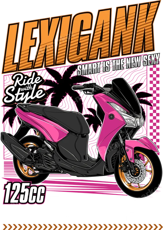 See allHit the streets in style with our dynamic Lexigank Yamaha Lexi 125cc scooter DTF transfer. This vibrant design features a bold pink Lexi scooter, emblazoned with 'LEXIGANK,' 'Ride with Style,' and 'SMART IS THE NEW SEXY' text, all set against a cool background of palm tree silhouettes and modern graphic elements. It's a statement piece for anyone who loves urban street culture and high-performance scooters. This ready to press heat transfer is perfect for personalizing your gear with a unique, edgy look. This DTF heat press design is ideal for scooter riders, Yamaha Lexi owners, motorsport enthusiasts, and anyone into streetwear fashion. It makes a fantastic gift for friends or family who appreciate custom apparel or have a passion for two-wheel adventures. Perfect for casual wear, meet-ups, or adding a personal touch to your favorite riding jacket, this graphic embodies the spirit of freedom and flair on the road. Show off your 'Lexigank' pride at rallies, events, or just cruising around town. Applying this high-quality iron on transfer is simple and efficient. Our apparel transfers work seamlessly on a wide range of materials, including 100% cotton, polyester, and various cotton-poly blends, ensuring versatility for your projects. For best results, use a heat press at 300-325°F for 15 seconds with medium pressure, then cold peel. For household iron application, ensure even, firm pressure. Enjoy the convenience of a ready to press transfer with absolutely no weeding required, making customization quick and easy. Experience superior quality with our professional DTF film. This durable t-shirt transfer boasts incredibly vibrant colors that pop, ensuring your design stands out. It's engineered to be crack-resistant and long-lasting, maintaining its sharp appearance wash after wash. The finished design has a remarkably soft touch, blending seamlessly with the fabric for maximum comfort. Trust dtf.market for a premium heat press design that brings your creative vision to life with exceptional results.