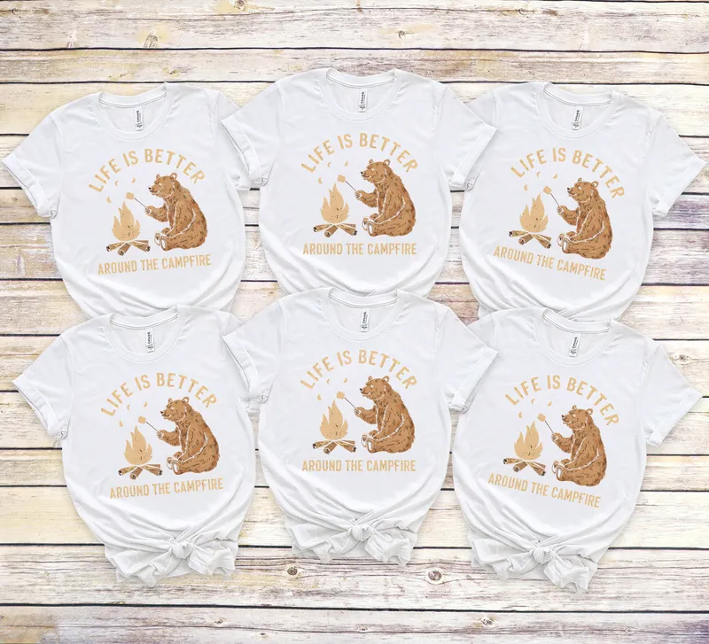 See allCapture the cozy spirit of the great outdoors with this charming "Life is Better Around the Campfire" DTF transfer. Featuring an adorable brown bear happily roasting a marshmallow over a crackling fire, this ready to press design brings warmth and a sense of adventure to any garment. The earthy tones and playful illustration make it a perfect choice for those who love nature and good company. This delightful direct to film transfer is ideal for campers, hikers, families, and anyone who cherishes memories made around a campfire. It makes a fantastic gift for Father's Day, birthdays, or as matching apparel for family camping trips, scouting events, or outdoor festivals. Design custom t-shirts, hoodies, or tote bags that celebrate the simple joys of nature and companionship. Applying this heat transfer is incredibly simple. It's compatible with cotton, polyester, and most fabric blends, ensuring versatility for your projects. Just use a heat press at 300-325°F for 15 seconds with medium pressure, then peel cold. For those without a professional press, a household iron can also be used with careful application. Best of all, there's no weeding required, making custom apparel creation quick and hassle-free. Our professional-grade DTF transfer film delivers vibrant colors, exceptional durability, and a soft-to-the-touch finish. This high-quality t-shirt transfer is crack-resistant and stretches with the fabric, ensuring your design looks great wash after wash. Create professional-looking apparel with an iron on transfer that stands the test of time and countless adventures.