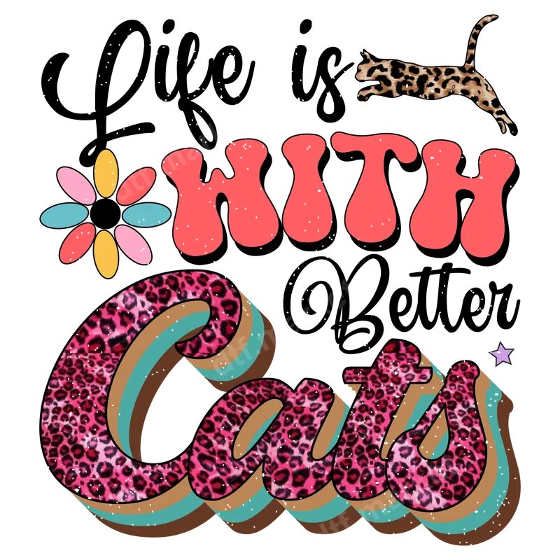 Life is Better With Cats Retro DTF Transfer | Leopard Print Cat Lover