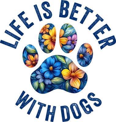 Life is Better with Dogs Floral Paw Print DTF Transfer