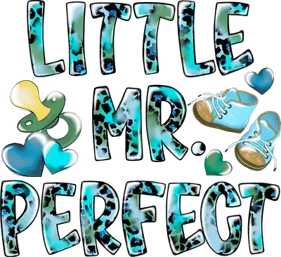 See allThe "Little Mr. Perfect" DTF transfer is an adorable design, celebrating the special little man in your life. This vibrant design features bold text in a stylish teal and black leopard print, accented with shimmering blue glitter. Complementing the phrase are charming baby elements: a sweet yellow pacifier, cute blue baby shoes, and playful hearts, all designed to make a statement. This ready to press transfer captures a joyful and proud sentiment, perfect for showcasing your newest family member. This iron on transfer is ideal for new mothers, expecting parents, and proud grandparents looking to create unique, personalized baby items. It makes a thoughtful gift for baby showers, gender reveal parties, or as a special way to announce a birth. Small businesses specializing in custom baby apparel, Etsy sellers, and crafters will find this heat transfer design a popular choice for adding a trendy and loving touch to their merchandise or projects. Applying this heat press transfer is simple and hassle-free. It adheres beautifully to a wide range of fabrics including cotton, polyester, cotton-poly blends, and even nylon. For best results, apply with a heat press at 300-325°F for 15 seconds with medium pressure, or use a household iron with firm, even pressure. There's no weeding required – just peel and press! It's perfect for custom t-shirts, baby onesies, hoodies, blankets, tote bags, and bibs. For lasting durability, wash garments inside out and tumble dry on low. Experience superior quality with this ready to press transfer, featuring vibrant, full-color printing and exceptional fine detail. The result is a crack-resistant image that feels soft to the touch, without the heavy, stiff feel often associated with vinyl. Each direct to film transfer is meticulously printed on premium DTF film with a strong adhesive backing, ensuring professional-looking results every time you create custom baby wear.