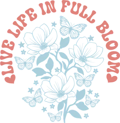 See allDiscover the vibrant message of our 'Live Life In Full Bloom' DTF transfer. This charming design features delicate line art flowers and graceful butterflies, all encircled by the uplifting phrase 'LIVE LIFE IN FULL BLOOM' in a retro-inspired font. The soft coral text combined with light blue floral elements creates a serene, positive, and inspiring aesthetic. It's a perfect ready to press transfer to add a touch of natural beauty and an encouraging sentiment to any garment. This inspirational design is perfect for anyone seeking to express joy, growth, and optimism. Ideal for crafters, small t-shirt businesses, and individuals who love nature-inspired apparel. It makes a thoughtful gift for birthdays, Mother's Day, or graduations. Create custom shirts for women's groups or simply for daily wear to spread a positive message. This easy-to-apply iron on transfer brings a whimsical touch, making it a versatile heat transfer design. Applying this high-quality heat press transfer is simple and efficient. It works seamlessly on cotton, polyester, cotton-poly blends, and even nylon fabrics. Achieve professional results with a heat press (300-325°F, 15 seconds, medium pressure) or a household iron. Forget tedious weeding; just peel and press! It’s perfect for custom t-shirts, stylish hoodies, cozy sweatshirts, tote bags, and personalized denim jackets. For lasting vibrancy, wash garments inside out in cold water and tumble dry on low heat. Experience superior quality with this ready to press transfer. It boasts vibrant, full-color printing with exceptional fine detail, ensuring your design looks crisp and beautiful. Our transfers are crack-resistant, offer incredible stretch, and feel soft to the touch, avoiding the heavy, stiff feel of traditional vinyl. Each direct to film transfer is meticulously printed on premium DTF film with a strong, reliable adhesive backing, guaranteeing professional-grade adhesion and stunning results with every application.
