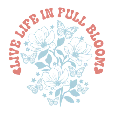 Live Life in Full Bloom Floral Butterfly DTF Transfer