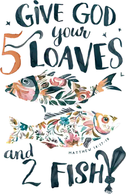 Loaves & Fish Matthew 14:17-19 DTF Transfer | Bible Verse Faith Design