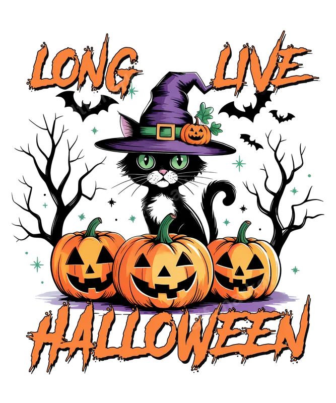 Long Live Halloween Witch Cat & Jack-o'-Lantern DTF Transfer