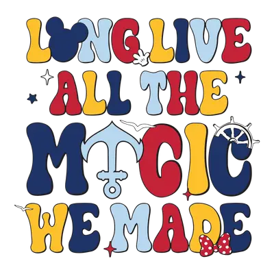 See allStep back in time with this charming retro-style DTF transfer featuring the heartwarming phrase "LONG LIVE ALL THE MAGIC WE MADE." The design boasts playful bubble letters in a classic palette of red, yellow, dark blue, and light blue, evoking a nostalgic feel. Subtle, iconic elements like mouse ears, a white glove, a polka-dot bow, a light blue anchor, and a ship's wheel are cleverly integrated, hinting at beloved theme park and cruise adventures. This ready to press DTF transfer is perfect for anyone looking to add a touch of whimsical remembrance to their apparel. This enchanting iron on transfer is ideal for families planning theme park visits, embarking on cruise trips, or simply celebrating cherished memories made together. It’s a wonderful heat transfer design for crafters creating custom gifts, small businesses stocking unique apparel, or individuals expressing their love for magical moments. Celebrate birthdays, family reunions, or just the everyday joy of nostalgia with this delightful design that resonates with joy and adventure. Applying this vibrant heat press transfer is incredibly simple. It adheres beautifully to a wide range of materials including cotton, polyester, cotton-poly blends, and even nylon. Achieve professional results with a heat press (recommended at 300-325°F for 15 seconds with medium pressure) or a standard household iron. Forget the hassle of weeding—just peel and press! This versatile design is perfect for custom t-shirts, hoodies, sweatshirts, tote bags, pillow covers, baby onesies, aprons, and denim jackets. For lasting durability, always wash your finished garment inside out and tumble dry on low. Experience superior quality with this ready to press transfer, showcasing vibrant, full-color printing and exceptional fine detail. It’s crack-resistant and soft to the touch, ensuring a comfortable wear without the heavy feel of traditional vinyl. Each direct to film transfer is meticulously printed on premium DTF film with a strong adhesive backing, guaranteeing professional-grade results that will stand the test of time and many washes.