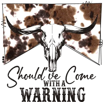 See allUnleash your wild side with this striking Longhorn Skull DTF transfer. Featuring a bold, distressed longhorn skull prominently centered against a rugged cowhide pattern, this design captures an edgy western spirit. Below the powerful imagery, the sassy phrase "Should've Come With A Warning" is rendered in a stylish mix of script and gritty block fonts, adding a touch of humor and attitude. This ready to press transfer is perfect for anyone looking to make a memorable statement with their apparel. This unique design is perfect for cowgirls, country music enthusiasts, and anyone with a feisty spirit who isn't afraid to stand out. It makes an excellent gift for birthdays, bachelorette parties, or just because you appreciate a good dose of western charm and sass. Small boutique owners, Etsy sellers, and crafters looking to create custom apparel will find this iron on transfer an easy and effective way to produce popular, high-demand items for their customers. It's a versatile heat transfer design for personalizing gifts or expanding your product line. Applying this heat press transfer is incredibly simple, making it ideal for both beginners and seasoned crafters. It adheres flawlessly to a wide range of materials including cotton, polyester, cotton-poly blends, and even nylon. For best results, use a heat press at 300-325°F for 15 seconds with medium pressure, or apply with a household iron. There’s no tedious weeding required—simply peel and press! Create stunning custom t-shirts, hoodies, sweatshirts, tote bags, pillow covers, and denim jackets with ease. For lasting durability, wash garments inside out and tumble dry low. Our ready to press transfer ensures vibrant, full-color printing with exceptional detail, bringing your designs to life. Enjoy a soft, smooth finish that feels comfortable to wear, without the heavy, stiff texture often associated with traditional vinyl. These transfers are designed to be crack-resistant and hold up beautifully wash after wash. Each direct to film transfer is printed on premium DTF film with a strong adhesive backing, guaranteeing professional-grade results and long-lasting wear on all your customized projects.
