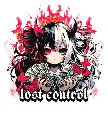 Lost Control Anime Demon Girl DTF Transfer | Money & Flames Design