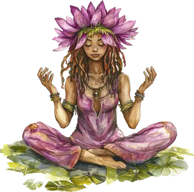 Lotus Goddess DTF Transfer, Meditating Woman Floral Heat Press Design