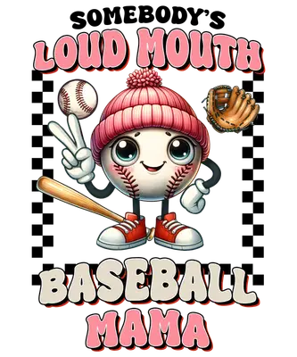 Loud Mouth Baseball Mama DTF Transfer - Cute Cartoon Design