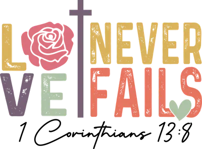 Love Never Fails 1 Corinthians 13:8 DTF Transfer Scripture Rose Cross