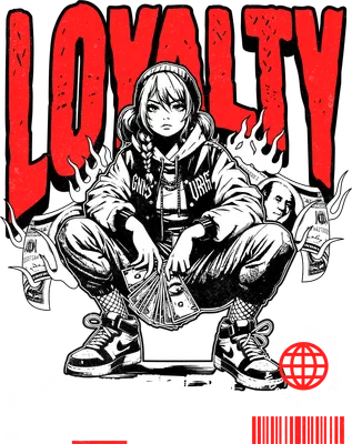 Loyalty Streetwear Anime Girl Money DTF Transfer Heat Press Design
