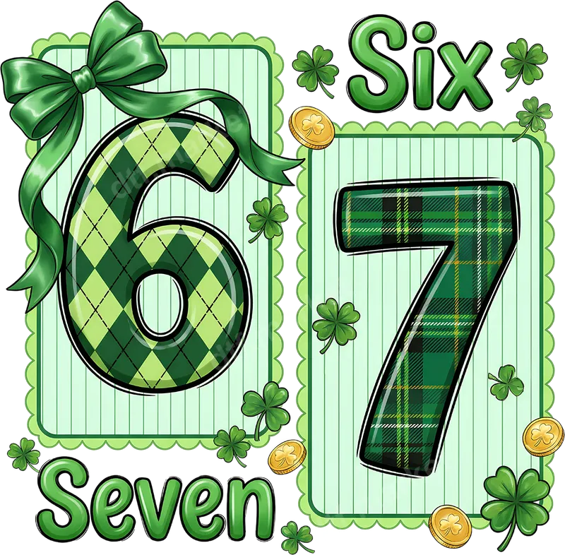 See allImmerse yourself in the festive spirit of St. Patrick's Day with this vibrant, lucky numbers DTF transfer, featuring digits '6' and '7'. The '6' showcases a cheerful green argyle pattern with a flowing green ribbon, while the '7' sports a classic dark green plaid. Adorned with scattered shamrocks and gleaming gold coins, this premium DTF transfer adds instant Irish charm, arriving perfectly ready to press onto your chosen garment. This delightful design is perfect for anyone looking to celebrate St. Patrick's Day in style. Ideal for individuals, families, or groups attending parades, parties, or themed events, it allows you to create unique holiday apparel. Whether showcasing Irish pride or simply embracing the luck of the Irish, this versatile heat press transfer also makes a fantastic, personalized gift for friends and loved ones. Applying this high-quality heat press ready design is straightforward. Our durable iron on transfer works flawlessly on cotton, polyester, and various fabric blends. For best results, use a heat press at 300-325°F for 15 seconds with medium pressure, then peel cold. A household iron can also be used with careful application. No weeding involved – simply press and enjoy your custom creation. Experience the exceptional quality of our DTF transfers. Printed using professional-grade DTF film and inks, this apparel transfer boasts vibrant, crack-resistant colors that stay soft to the touch after application. With strong adhesive properties, your new t-shirt transfer will securely bond to your garment, ensuring a professional finish every time.