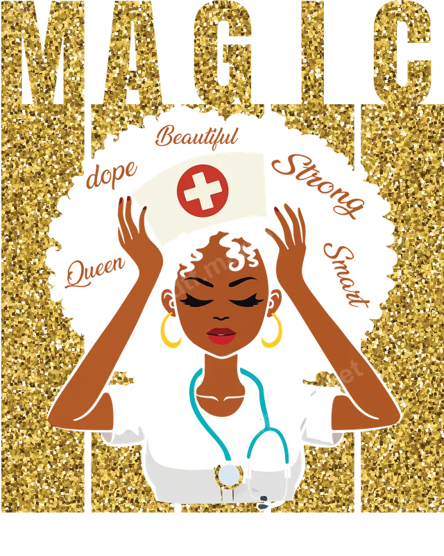 Magic Black Nurse Afro Glitter DTF Transfer | Ready to Press Heat Transfer