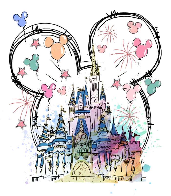 See allImmerse yourself in the magic with this enchanting castle DTF transfer, featuring a whimsical sketch and watercolor design. A majestic fairytale castle, reminiscent of iconic theme park landmarks, is beautifully framed within a playful Mickey Mouse ear outline. Adorned with colorful balloons, sparkling stars, and vibrant fireworks, this ready to press design captures the joy and wonder of celebration. This high-quality direct to film transfer is perfect for bringing a touch of fantasy to any garment. This magical heat transfer is ideal for anyone planning a family vacation, celebrating a special birthday, or commemorating an anniversary. It's a must-have for theme park enthusiasts, Disney-inspired trips, or creating custom souvenirs. Design matching shirts for your group, or craft a unique gift for a loved one who cherishes fantasy and fun. This iron on transfer will make memories last longer. Applying this durable heat press design is effortless. It works wonderfully on a wide range of fabrics, including cotton, polyester, and various blends. For best results, use a heat press at 300-325°F for 15 seconds with medium pressure, then peel cold. If you don't have a heat press, a household iron can also be used with careful application. Forget about time-consuming weeding; this t-shirt transfer is ready to apply right out of the package. Experience professional-grade quality with every custom transfer. Our DTF transfers boast incredibly vibrant colors and sharp details that pop on any fabric. Engineered for durability, they are crack-resistant, fade-resistant, and incredibly soft to the touch, ensuring your apparel remains comfortable and long-lasting. Enjoy a premium heat press transfer that stands up to countless washes and wears.