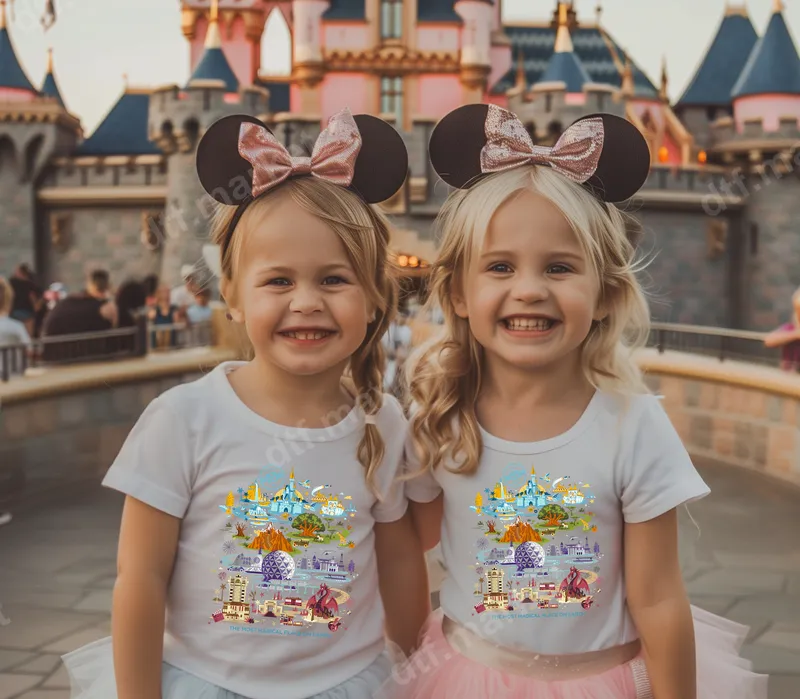 See allThis vibrant DTF transfer captures the essence of a beloved fantasy theme park adventure, featuring a colorful collage of iconic landmarks and attractions. From a majestic castle to a futuristic geodesic dome, and a grand tree of life, this ready to press transfer brings the magic of a full park experience to your apparel. The design is beautifully rendered with a playful, illustrative style and includes the familiar phrase "THE MOST MAGICAL PLACE ON EARTH" at its base, making it an instant favorite for anyone who loves theme park excitement. This dazzling heat press design is perfect for families, kids, and theme park enthusiasts planning their next big vacation or celebrating past cherished memories. It makes an ideal iron on transfer for matching family shirts for a trip, a thoughtful gift for a birthday, or a fun way to commemorate summer adventures. Imagine custom t-shirts for siblings, friends, or even entire groups, ensuring everyone looks unified and magical on their special day or journey. Our premium direct to film transfers are designed for easy application on a wide range of fabrics including cotton, polyester, and blends. Simply use a heat press at 300-325°F for 15 seconds with medium pressure, or apply with a household iron. These heat press ready decals require no weeding or complex steps, making customization quick and hassle-free, transforming plain garments into personalized keepsakes in minutes. Experience exceptional quality with our professional DTF film, known for vibrant colors that truly pop, crack-resistant durability, and a soft, smooth feel on any garment. The strong adhesive ensures your design stays put through countless washes and wears, maintaining its magical appeal. Create professional-looking t-shirts, sweatshirts, tote bags, and more with this high-quality shirt design that's built to last.