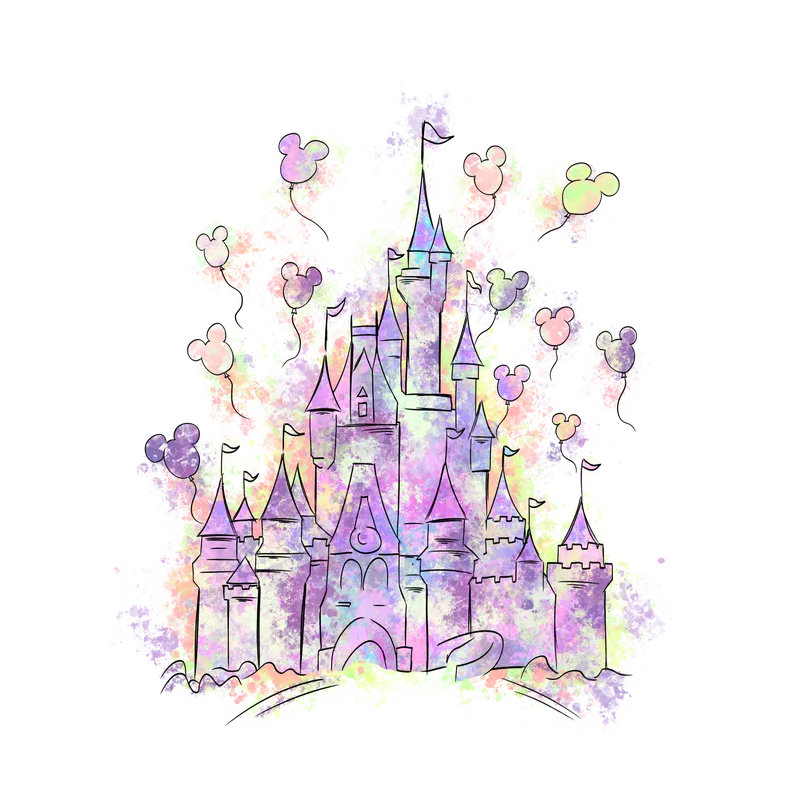 Magical Pastel Castle & Mickey Balloons DTF Transfer