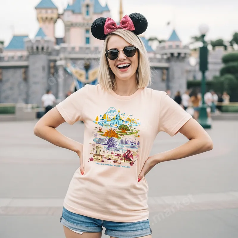 See allThis enchanting DTF transfer captures the spirit of the world's most beloved theme park, featuring a whimsical collage of iconic landmarks and attractions. From Cinderella Castle to Spaceship Earth and the Tree of Life, this colorful design beautifully illustrates "THE MOST MAGICAL PLACE ON EARTH." It's a vibrant, ready to press design that brings the joy and wonder of a magical vacation right to your apparel. Perfect for theme park enthusiasts, families planning a magical getaway, or anyone who cherishes those unforgettable memories. This heat press design is ideal for family vacation shirts, souvenir apparel, birthday gifts, or as a fun way to express your love for fantasy and adventure. Customize matching shirts for your group trip or create unique gifts for friends and loved ones heading to their dream destination. Applying this direct to film transfer is incredibly easy! Our premium heat transfers work seamlessly on a wide range of materials, including cotton, polyester, and various blends. For best results, use a heat press at 300-325°F for 15 seconds with medium pressure. It's also suitable for application with a quality household iron, offering a convenient iron on transfer solution. Forget weeding vinyl; simply press and peel for a professional finish. Each DTF transfer boasts vibrant colors, exceptional durability, and a soft, flexible feel that won't crack or peel. Manufactured using high-quality DTF film and strong adhesive, your custom apparel will stand up to countless washes, maintaining its magical appeal. Elevate your wardrobe with a professional-grade shirt design that looks fantastic and lasts.