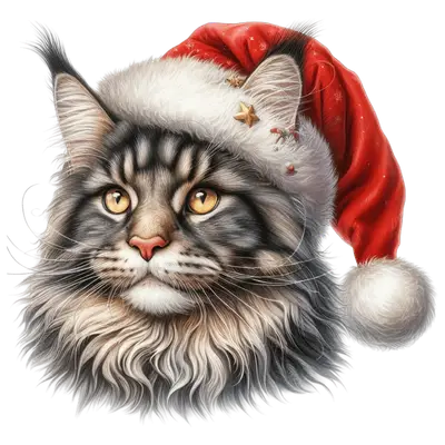 Maine Coon Cat DTF Transfer | Festive Christmas Santa Hat Design
