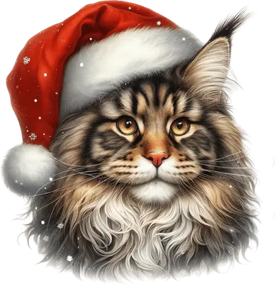 Maine Coon Cat Santa Hat DTF Transfer - Christmas Kitten Ready to Press