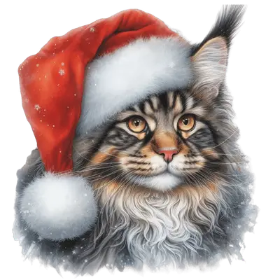 Maine Coon Cat Santa Hat DTF Transfer | Christmas Ready to Press