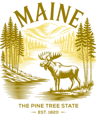 Maine Moose Pine Tree State Vintage Nature DTF Transfer