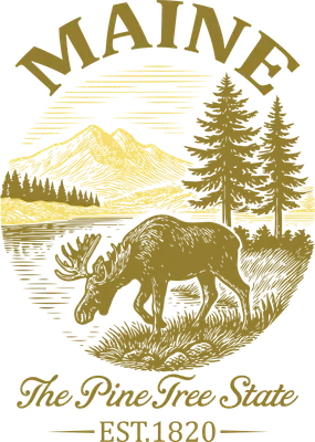 Maine The Pine Tree State Moose Mountains Vintage DTF Transfer