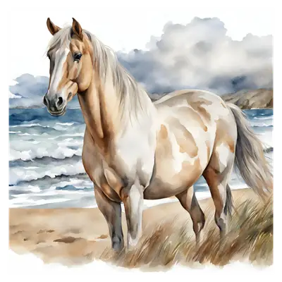 Majestic Palomino Horse Beach Watercolor DTF Transfer