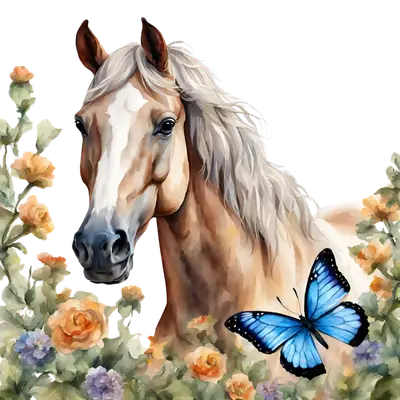 Majestic Palomino Horse & Butterfly Floral DTF Transfer
