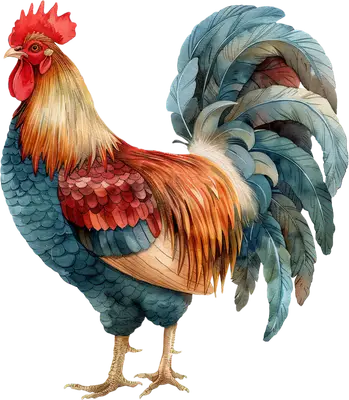 Majestic Watercolor Rooster DTF Transfer | Farm Animal Apparel Heat Press Design
