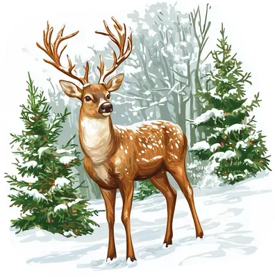 Majestic Winter Deer Snowy Forest Scene DTF Transfer