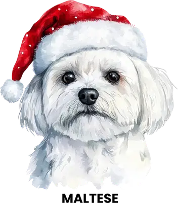 Maltese Dog Santa Hat DTF Transfer | Cute Christmas Pet Design