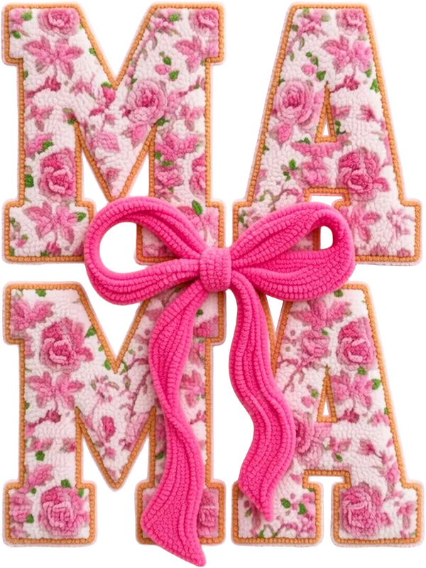See allThis exquisite DTF transfer features the word "MAMA" in a charming collegiate-style font, each letter adorned with a soft, plush floral pattern resembling chenille patches. A vibrant hot pink knitted bow adds a playful and loving touch, making this design instantly appealing. This ready to press transfer is perfect for celebrating the incredible mothers in your life with a touch of handmade warmth and style. This delightful heat transfer is ideal for anyone looking to create a thoughtful gift for Mother's Day, a birthday, or just because. Perfect for proud moms, grandmas, new mothers, or any beloved mother figure, it adds a heartfelt sentiment to any garment. Use it to craft custom t-shirts, cozy hoodies, or unique tote bags that show appreciation and love. Applying this vibrant design is a breeze. Our high-quality iron on transfer is compatible with a wide range of fabrics, including cotton, polyester, and their blends. For best results, use a heat press at 300-325°F for 15 seconds with medium pressure. This design also works wonderfully with a household iron, offering flexibility for all crafters. Enjoy a professional finish without any tedious weeding! You'll love the professional finish and durability of this apparel transfer. Printed with vibrant, long-lasting colors on premium DTF film, it offers excellent crack resistance and a soft, smooth feel once applied. The strong adhesive ensures your custom transfer will stay put, maintaining its beautiful appearance wash after wash, making every garment a cherished keepsake.