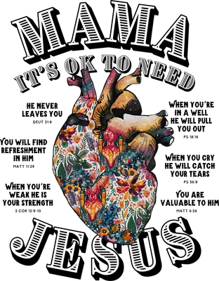 Mama It's OK to Need Jesus Floral Heart Scripture DTF Transfer