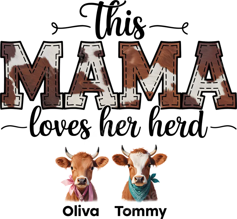 Mama Loves Her Herd Cowhide DTF Transfer | Personalized Calf Names